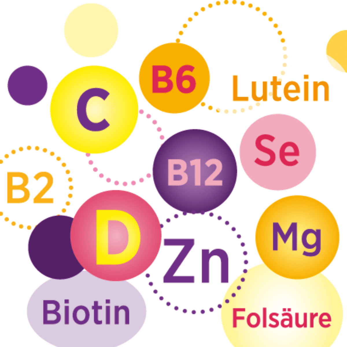 Vitamin C, Zink, Selen, Vitamin A, B6, B12, Eisen und Kupfer spielen eine Rolle bei der Tätigkeit des Immunsystems. Vitamin D und Pholat fördern die Immunabwehr.