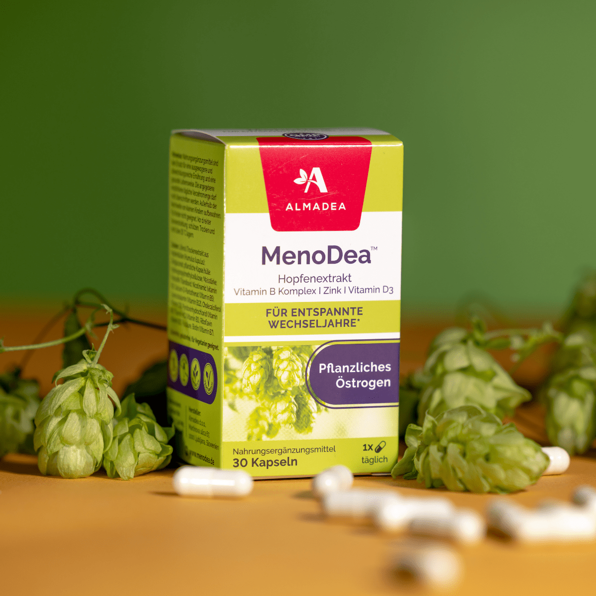 MenoDea enthält Hopfenextrakt, standardisiert auf 8-Prenylnaringenin, der als stärkstes natürliches Östrogen wirkt.